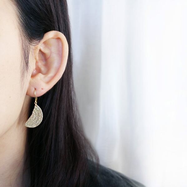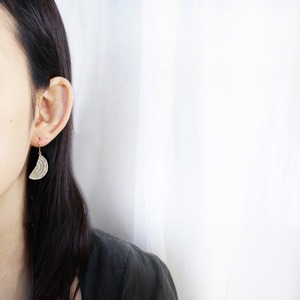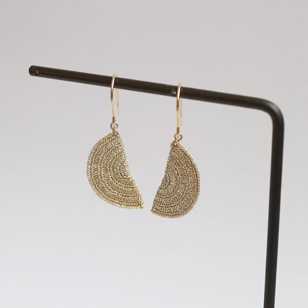 極細のメタリック糸で編んだ半円モチーフの耳飾り(1ペア)です。